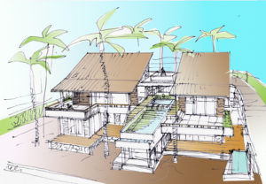 ‘Ik ben opgegroeid op Curaçao. Hier kom ik vandaan en ik weet als geen ander wat de klimatologische omstandigheden op het eiland zijn. Dat is handig, want ze zijn essentieel voor een goed ontwerp. Op mijn vele reizen naar Azië heb ik gezien hoe ze daar bouwen. Deze eenvoudige stijl kan ook op Curaçao. Het is voor mij een bron van inspiratie. In mijn ontwerpen zie je vaak dat ik de elementen uit elkaar trek. Zodat de verkoelende wind haar werk kan doen en ik zo een optimale relatie met buiten kan creëren.’